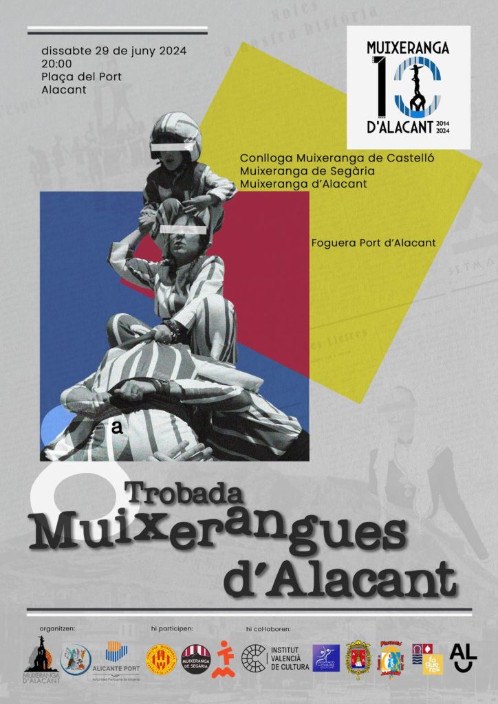 El pròxim 29 de juny de 2024 celebrarem la 8a Trobada de Muixerangues i tornem a Alacant quasi 5 anys després, a la plaça del port vell i gràcies a la Foguera Port d’Alacant.